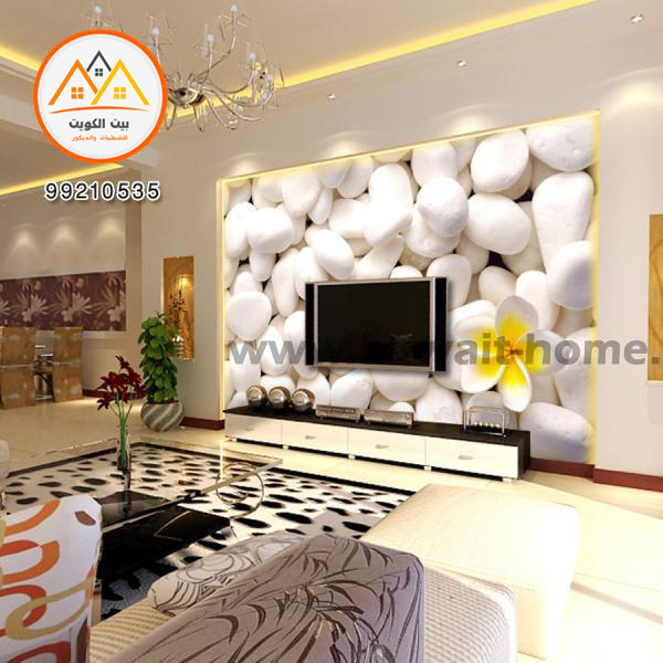 شركة دبل لاين لتشييد المباني 99339036 بعض التصميمات الداخلية الهادئه والتى تعتمد ورق الحائط باشكال الازهار الثلاثية الابعاد 3d كعنصر اساسى فى التصميم مع مراعاة الالوان المطلوبة وملائمتها للاثاث والديكور