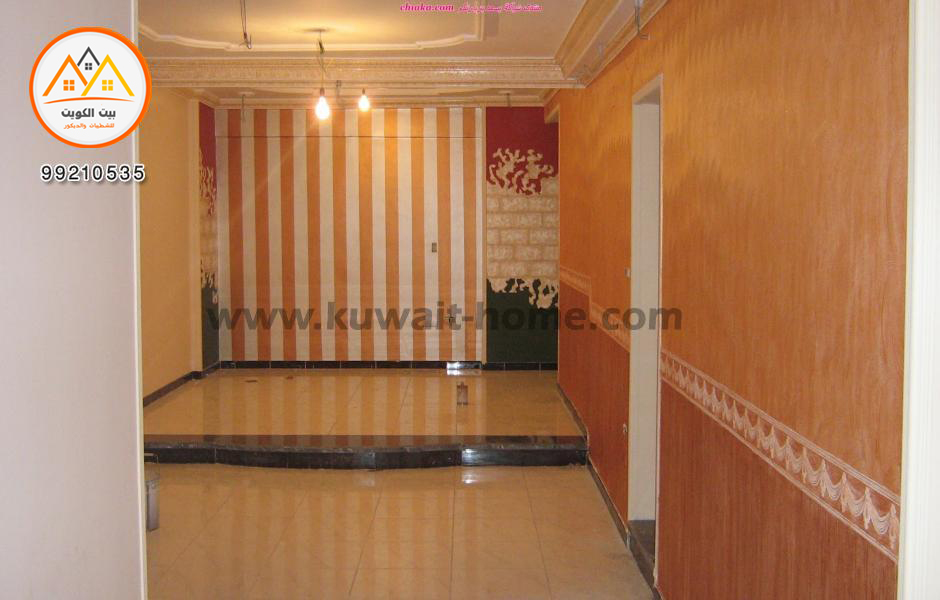 تصميم الديكور والجرانيت والاصباغ صاله صغيره و موزع (ممر) واصباغ تقليم واصباغ صدفيه الكرانيش وحزام ديكور بروز خفيف